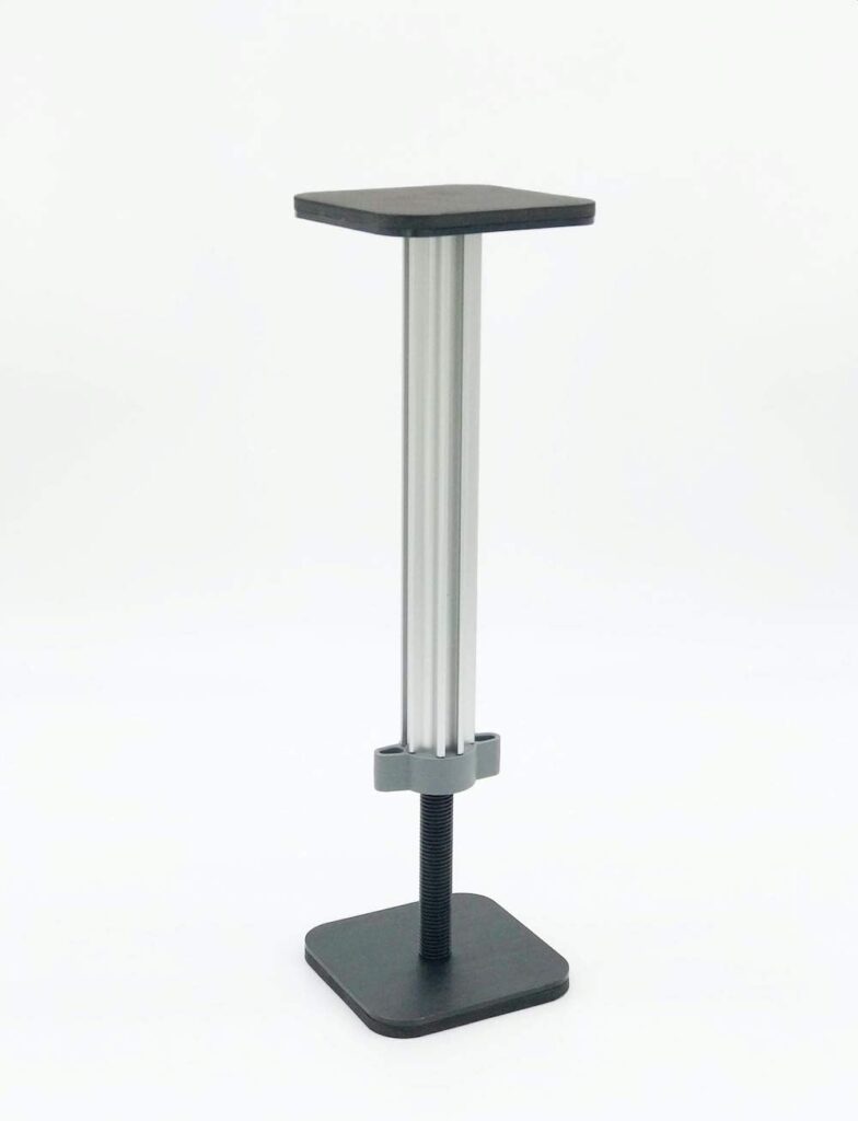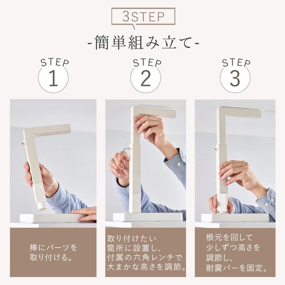 ネジつきのつまみでポールを固定し、ジャッキ部分を回して突っ張ることで簡単に設置することができます。