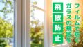ガラス飛散防止フィルムは、ガラスが破損した際に、床への飛び散りを防ぐ対策グッズです。地震の揺れで窓ガラスや食器棚のガラスが割れることがあります。通常であれば、ガラスの破片が床一面に広がり、ケガの原因になったり、行動範囲が狭まったりしますが、このフィルムを貼ることで、ガラスが割れたままフィルムに留まる為、飛び散りを防ぐことができます。