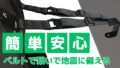 ベルト止めは、テレビに使う転倒防止グッズです。テレビと床面をつなぐようにベルトを固定し転倒を防ぎます。テレビにはねじ止め、床面には専用のジェルで貼り付けて固定するため、地震の揺れを吸収し地震に備えます。ベルトに少し余裕があり、対象物を動かしたり、持ち上げたりすることができます。掃除の際に邪魔にならない点がポイントです。