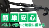 ベルト止めは、テレビに使う転倒防止グッズです。テレビと床面をつなぐようにベルトを固定し転倒を防ぎます。ベルトに余裕があるため、少し動かしたり、持ち上げたりできますので、掃除の際に邪魔になりません。床面の接着には粘着ジェルで固定し、地震の揺れを吸収します。ベルトでつなぐことによって、地震の揺れによるテレビの転倒を防ぐことができます。