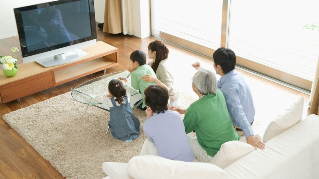 テレビの利点は、みんなで視聴できる点です。例えば、商業施設や料理店など、テレビを配置している場所であれば、その場にいる全員が災害情報を一緒に認識できます。そのため、その後の避難においても、全員が同じ認識で行動できる為、混乱が起きにくいです。家庭の場合でも、リビングのテレビ一つで、家族全員の状況を一つに認識することができるため、同じ危機感を持って対策を取ることができます。