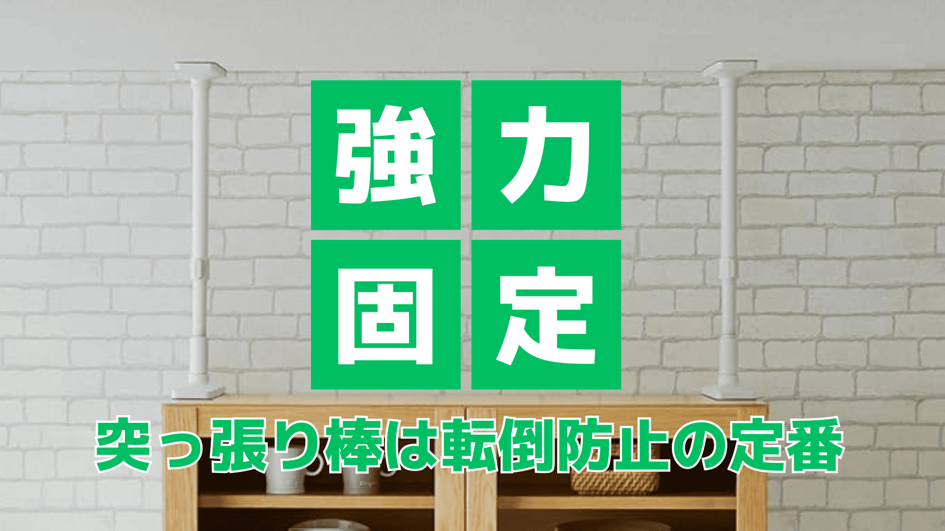 仕組みは家具と天井の間に突っ張るだけと非常にシンプルです。設置へのハードルが低いことに加え、見た目にわかりやすく、転倒防止への効果は非常に大きい為、最優先で取り組むべきです。