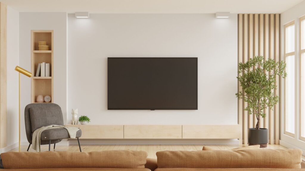 壁掛けテレビは、壁掛け金具をネジで壁に打ち込んで、テレビを固定する設置方法ですが、壁掛け金具が壁と強力に固定されているため、大きな地震でもテレビが落下する心配がありません。
